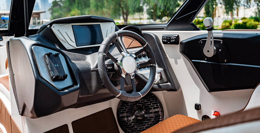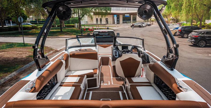 Drivers always have a clear horizon view when comfortably seated because even with all six independently pumped ballast locations filled, the S240 runs level in the water, front to back, whether towing a surfer or not. This level running attitude creates longer, pushier waves, making it the perfect choice for beginners hoping to grow their water sports skills. The F-Series Tower by Roswell offers easy-folding functionality.