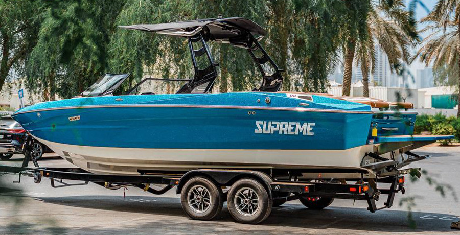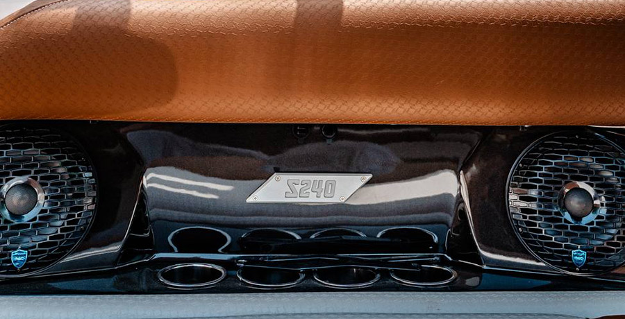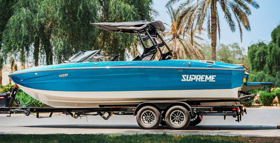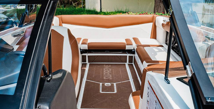 This 24-foot Supreme accommodates 16 people and offers up to 4800 pounds of ballast to create envy-worthy wakes. Built on the EZ-V Hull, the S240 shapes symmetrical wakeboard wakes, and with the available QuickSurf System offers transferable surf waves that rival every other premium tow boat offering.