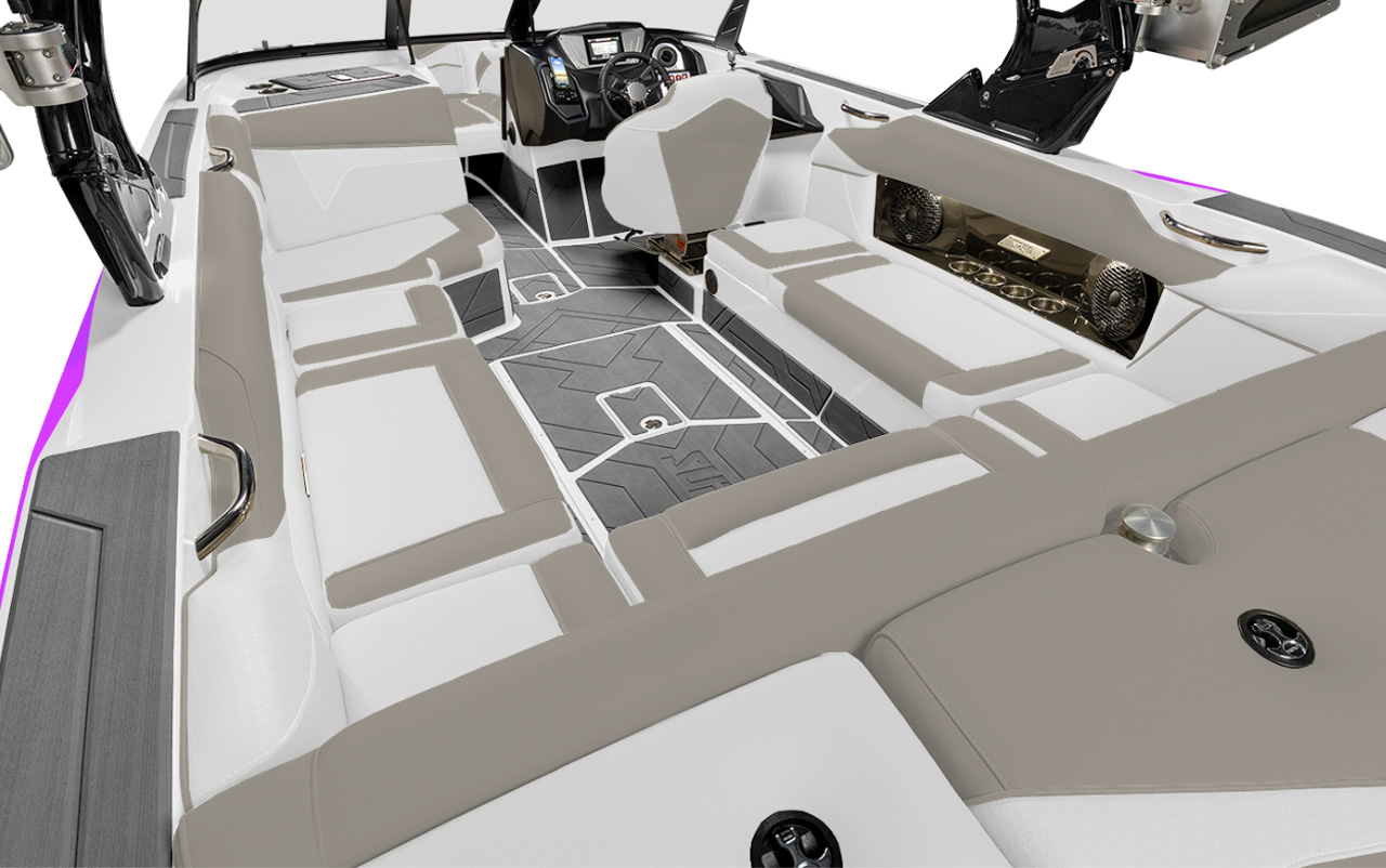 Supreme S240 is a 24-foot Supreme accommodates up to 16 people and offers as much as 4800 pounds of ballast. Your heart will beat a little quicker when you try the new standard Fast Mover Ballast system, with its 13.5-gallon per minute SeaFlo pumps. This new system can fill ballast up to 68% faster, reducing the wait time for fun to almost nothing. Built on the EZ-V Hull, the S240 has long, pushy waves and a level running attitude that creates driver visibility. The S240 is the perfect choice for beginning wake surfers because you can build your skills one wave at a time with the available QuickSurf System that offers waves to rival every other premium tow boat offering. It’s the boat with the premium presence at a practical price.