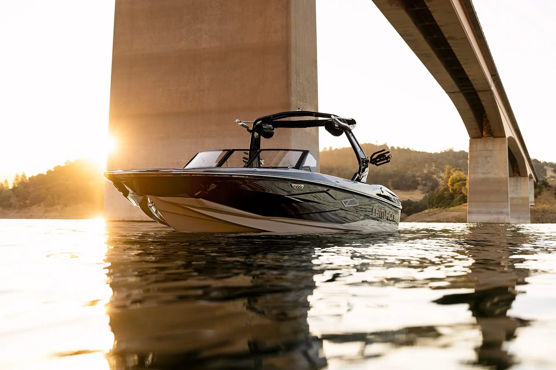 The Nv233 takes it up a notch from the entry Centurion Nv213, with two more feet of length, room for two more passengers and the exotic sports car look that says high performance even when docked. It comes with up to 5000 pounds of available ballast, more than half of which can be filled in 90 seconds with available RAMFILL2. This isn’t a stripped-down version of a more expensive Centurion or an older design dressed-up new, the Nv233 is designed from the water up to deliver precisely what you need to get the most out of your water sports experience. The Nv233 offers world championship caliber surf, with the ability to propel you to your own best performance. Unique to the Nv Series design is the unobstructed GatorStepped space between the tower and the dash that facilitates easy communication directly with a rider – perfect for coaching. An abundance of built-in quality features means the Nv233 comes with everything you need to get on the water and enjoy a great ride from day one, but that doesn’t mean you can’t option up as well. This 23-foot Centurion leaves nothing to be desired except more time on the water.