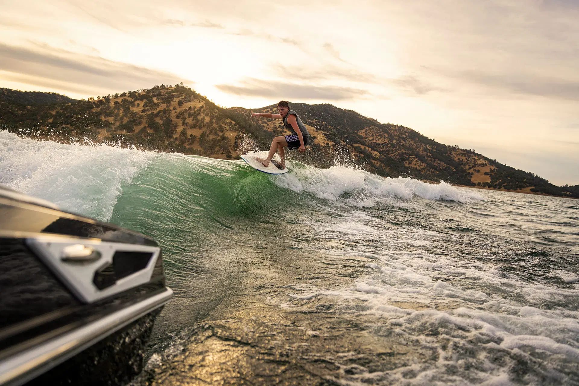Not only does it offer the best waves, wakes and ride, but its appeal goes well beyond water sports towing. With deep comfortable seating, thoughtful control in the new 14" X 2 Captive Touch Side by Side High-Definition Dash System, and the available Predator Power Tower (PPT) with fixed bimini for shade, powerful sound system choices and dozens of thoughtful touches, the Ri265 reaches beyond the concept of performance sports boat, making it ideal for enjoying a full day on the water. Yacht certified with up to 5850 pounds of available ballast, the Ri265 is waiting to be tamed.