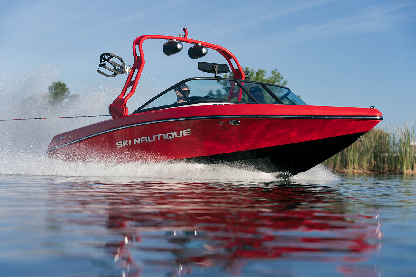 Created upon one of the most decorated hulls in waterski history, the Ski Nautique 200 is a performance-first model with the track record to back it up. Built off the framework of the world-record setting Ski 200, this model is an AWSA tournament-approved towboat that produces soft wakes for all levels of waterskiing. With an open interior layout and a playpen-style bow, the Ski Nautique 200 is a traditional bow ski boat that speaks to the Nautique purist in all of us.