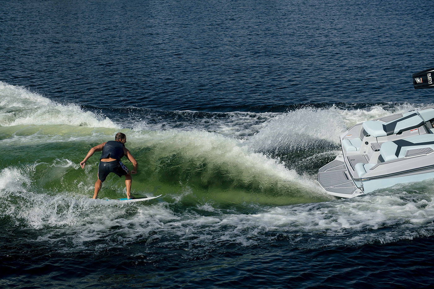 Celebrating its tenth year as the world’s leading wake sports boat, the Super Air Nautique G23 continues its reign on top as the gold standard. The legendary performance and award-winning lineage that the G23 has built its reputation on for a decade continues in the most advanced and luxurious model to date. With world-class wakes and waves, a stunning exterior and all of the interior amenities you could desire, the G23 is ready to outperform anything else in its class.